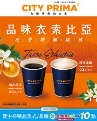 2025/11/12~2025/11/25 CITY PRIMA 品味衣索比亞 花香細膩綻放!買中杯精品美式/精品拿鐵,贈OPENPOINT 10點(點數使用期限至2025/12/31)