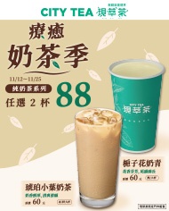2025/11/12~2025/11/25 CITY TEA 療癒奶茶季!純奶茶系列任選2杯88元