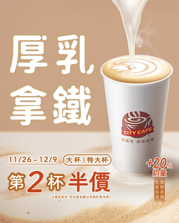 商品數量以各門市實際兌換及販售數量為準。本活動不得與其他優惠活動併用,咖啡智販機、行動隨時取購買及兌領亦不參與此活動。不提供線上寄杯服務,自備飲料杯(非一次用飲料杯)優惠省五元,先計算優惠再折扣5元。詳細活動辦法依本公司公告為主。凡參與本活動,即視同承認及接受本活動注意事項及相關規定。本公司保有隨時修正、暫停或終止本活動之權利,若有未盡事宜,悉以本公司之相關公告辦理;本公司保留最終解釋及決定權利。本海報產品圖片中杯子為裝飾使用,實際購買/兌換容器依門市可提供之包裝與實品為主。提供客情服務卡之門市,同意您將購買後之飲品暫時寄放門市,敬請於購買當月之月底前完成領取,恕不提供跨月領取。CITY CAFE、CITY PRIMA精品咖啡、CITY TEA現萃茶、CITY PEARL、不可思議咖啡、思樂冰、雪淋霜霜淇淋、酷聖石冰淇淋/霜淇淋、不可思議茶BAR…等特定線下活動,不適用於部分指定特殊門市(例如:服務區、機場、高鐵站、醫院…等),不參與活動門市名單請詳見7-ELEVEN官網公告,查詢網址:https://www.7-11.com.tw/。